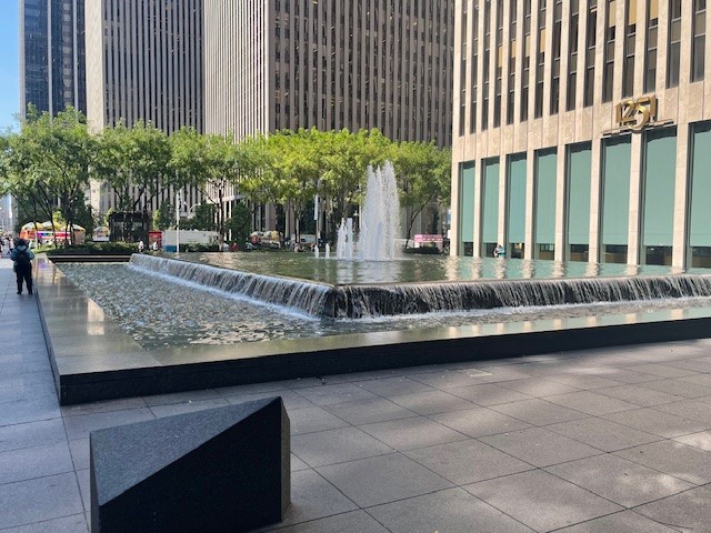 1251 Avenue of the Americas has a large plaza that wraps around the building on 50th Street, 49th Street and Avenue of the Americas.