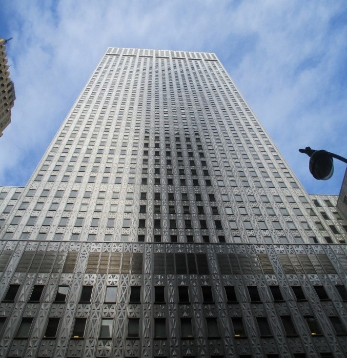 150 East 45th Street is a 42-story high building that was constructed in 1955. The building has a steel frame structural system with reinforced lightweight concrete floor construction. The first floor has a polished granite panel base with a stainless-steel curtain wall and large framed storefront and door openings.