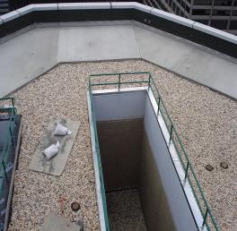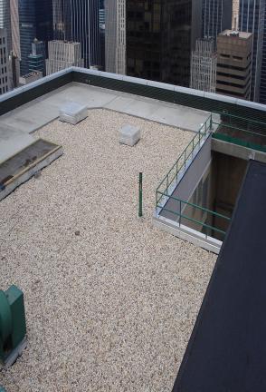 55 East 52nd Street is a forty-story high building with a main roof and window washing rig/ stair structure. The roof contains a 10’ wide concrete slab at the perimeter, in which the roof extends under it and also provides a pavement area for the window washing rig.
