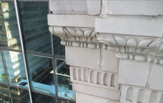 - Provide cast stone replacement coping at existing parapet with appropriate flashing