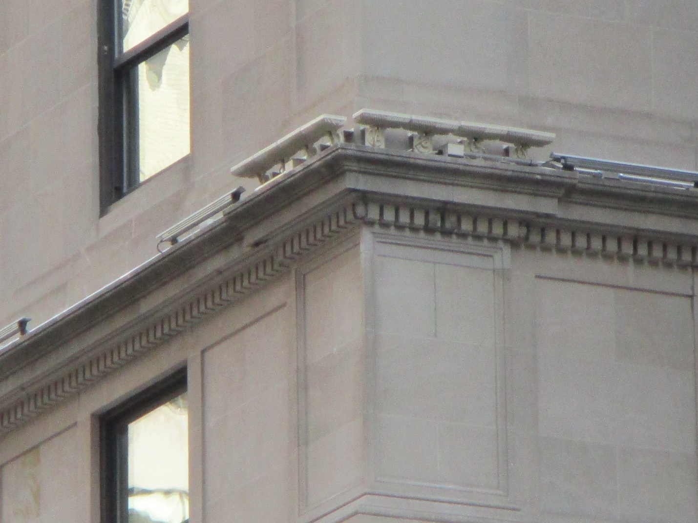 - Provide façade lighting units at horizontal limestone ledges and setback roof