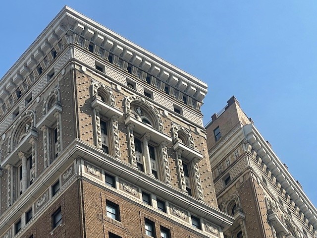 Herald Towers is a 26- story high, E-shaped building that was constructed in 1912 and occupies the western corner lot extending from 34th Street to 33rd Street and Broadway on the west. The structure was originally constructed as a hotel and then transformed into apartments addressing college graduate students.