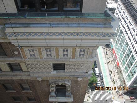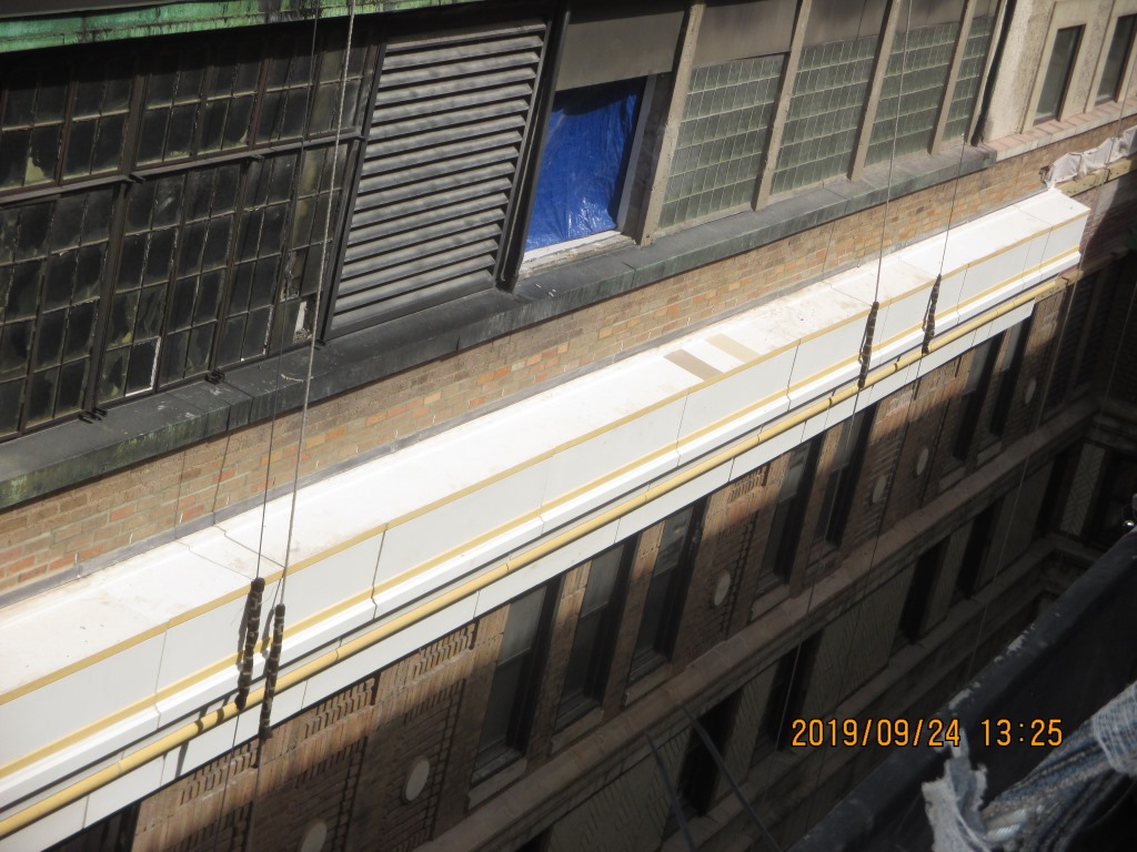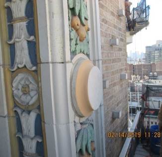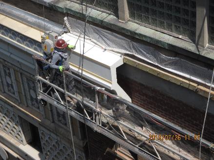 - Replacement of terra cotta water table bands with fiberglass replacement units with steel substructure truss.