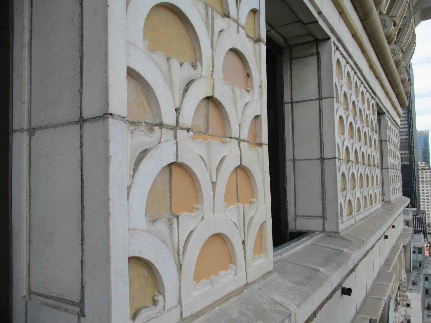 - Replacement of terra cotta column units, window surrounds and window sills with cast stone units