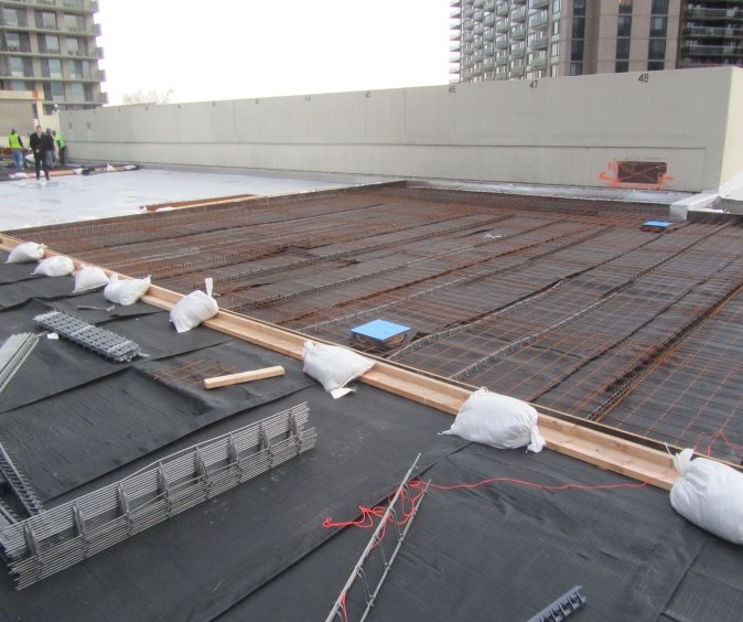 The Colony consists of a 4 ½ level parking garage, which services 450 units. The garage is a separate structure from the residential tower and partially covered by a sloping site. The top level of the roof parking garage level consists of a topping slab, which exhibited cracking, spalling and water infiltration at the perimeter. Heavy rust corrosion and concrete spalling existed at the underside of the ramp. Trap moisture under the topping slab underwent repetitive freeze/thaw cycling, causing the cracking of the topping slab.