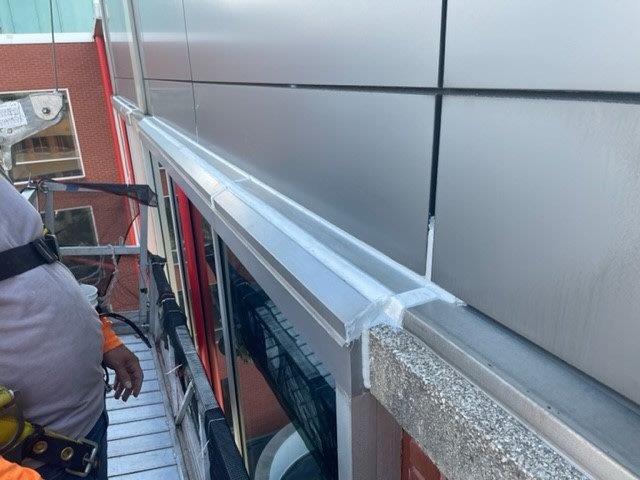 - Resealing deteriorated sealant at cast stone windowsills